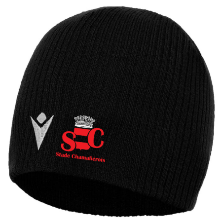 Produit brodé. Bonnet noir : logo Chamalières avec couronne blanche